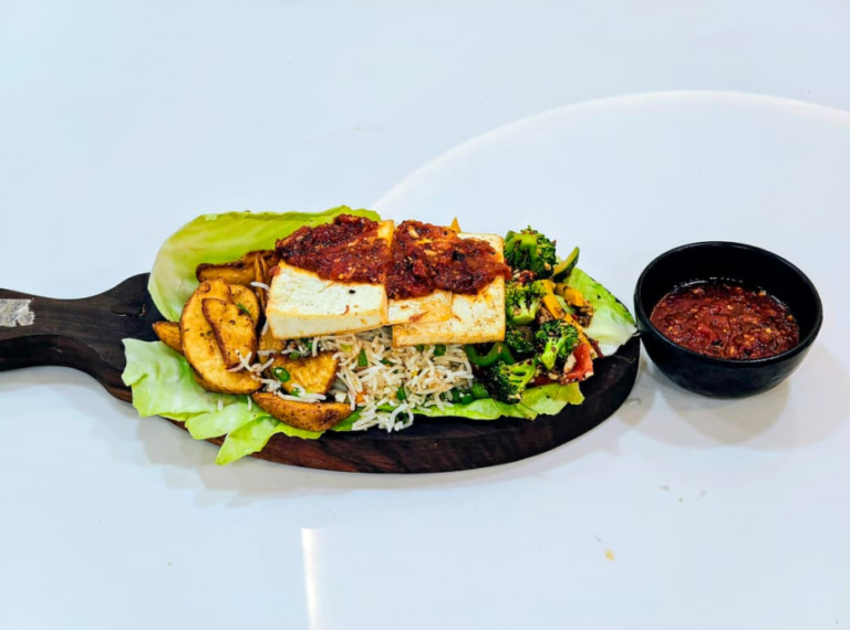 Our menu offers a variety of vegetarian cuisines including Indian, Chinese, and fusion dishes.